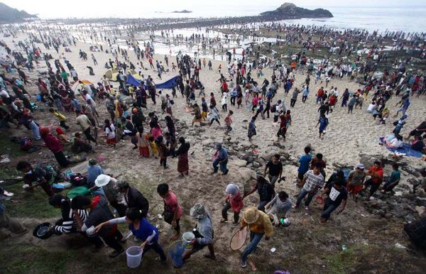 Singkat cerita Dikisahkan pada zaman dahulu kala berdirilah sebuah kerajaan yang mempunyai seorang putri cantik nan jelita yang bernama Putri Mandalika,karena kecantikan putri ini ,maka banyak kerajaan luar yang mempunyai pangeran ingin mempersuntingnya sebagi seorang istri,malah sampai kerajaan-kerajaan tersebut akan mengadakan perang jika pangeran mereka tidak di terima sebagai suami dari sang putri,dalam kegalauannya sebagai seorang putri,akhirnya mandalika mencoba bijak yaitu dengan terjun kelaut,miris memang ,tapi dia lebih memilih mati dan berubah menjadi cacing laut yang bisa dinikmati oleh semua orang dalam hal ini rakyatnya daripada terjadi pertumpahan di negerinya.